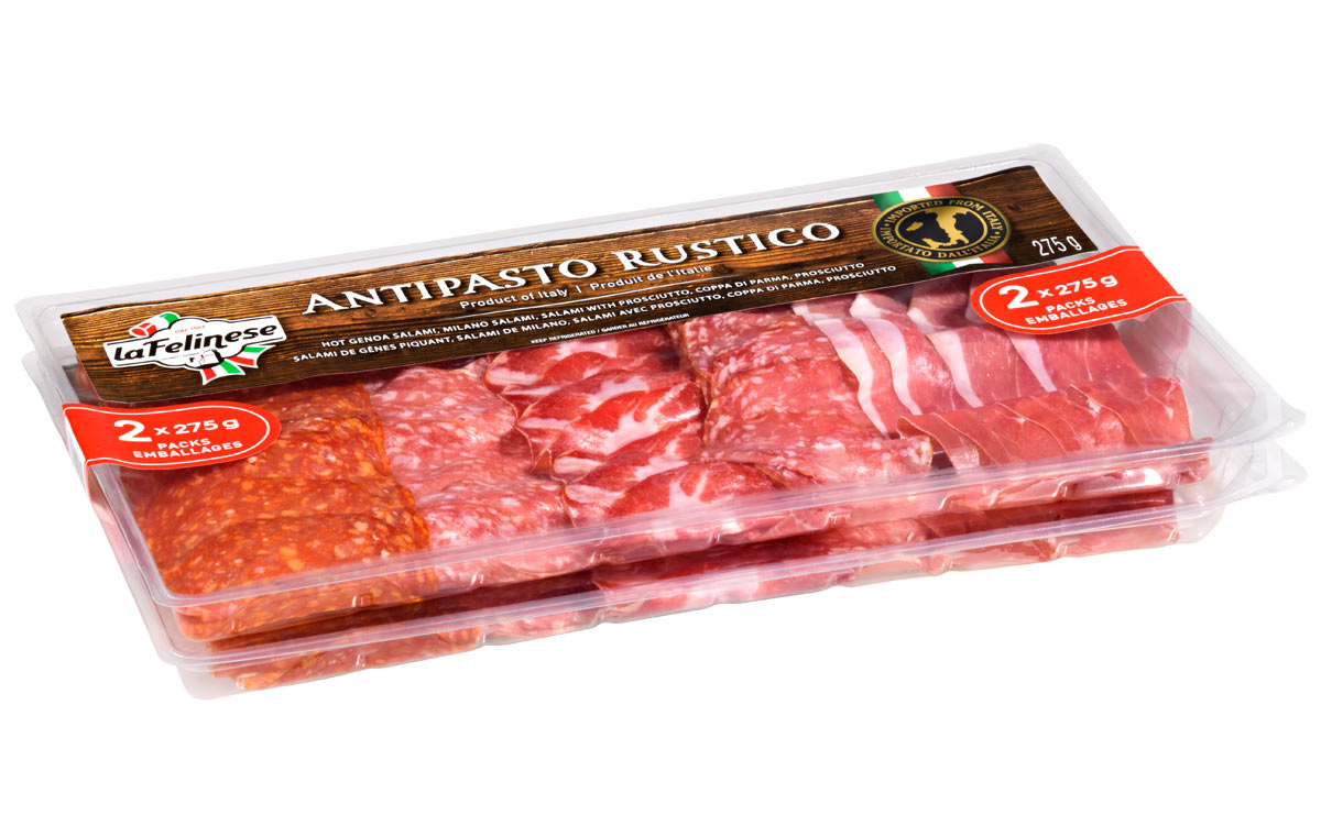 Hot Genoa salami: Pork . Salt . Seasoning (sugars [dextrose], potassium chloride, inulin, pepper extract) * Spices . Paprika * Sodium ascorbate * Potassium nitrate * Dehydrated garlic * Sodium nitrite ' Bacterial culture. Milano salami: Pork ' Salt ' Seasoning (sugars [dextrose], potassium chloride, inulin, pepper extract) * Spices ' Sodium ascorbate * Potassium nitrate * Dehydrated garlic ' Sodium nitrite * Bacterial culture. Salami with prosciutto: Pork * Salt * Seasoning (sugars [dextrose], potassium chloride, inulin, pepper extract), Spices . Sodium ascorbate ' Dehydrated garlic ' Potassium nitrate . Sodium nitrite . Bacterial culture. Coppa di Parma: Pork * Salt * Sugars (dextrose) * Sodium ascorbate * Spices * Dehydrated garlic * Potassium nitrate * Sodium nitrite . Spice extracts.