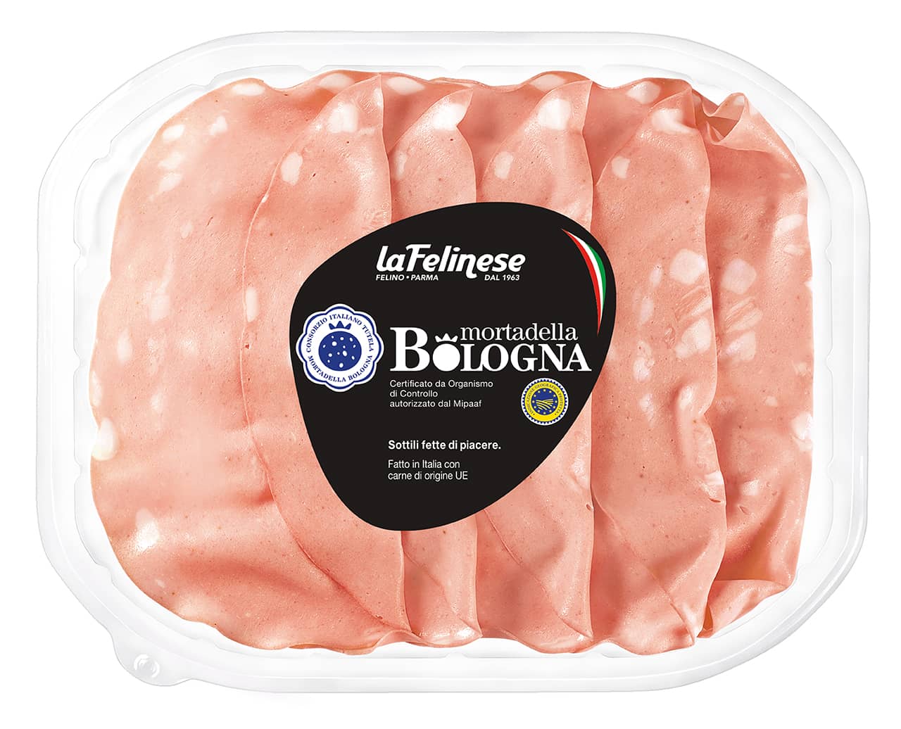 Fragrant and aromatic thin slices of Mortadella Bologna PGI. With irresistible tenderness and unmistakable flavour.
