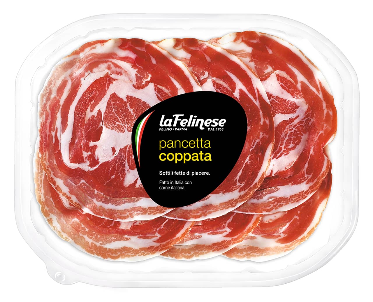 Sottili fette di Pancetta Coppata dal sapore gustoso e appetitoso ideale per chi non ama le parti grasse.